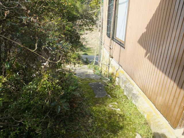 | 径は高い法面の上を通っている。 | 美保関町下宇部尾 元保育所入り口の石地蔵。 | 元下宇部尾保育所の前を奥へ向かう。 |