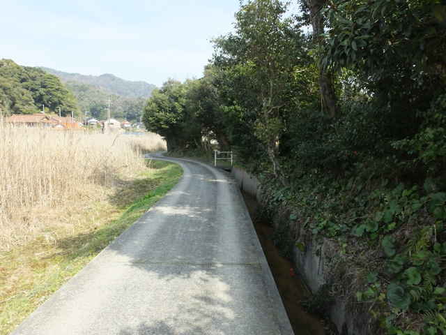 | 民家の脇を下りていく。 | 水路の脇を行く。 | 横田神社 |