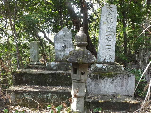 | 玉菊姫の碑、昭和25年9月建立 | 一字一石塔、寛政九丁巳年とある。 | |