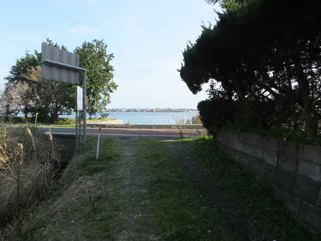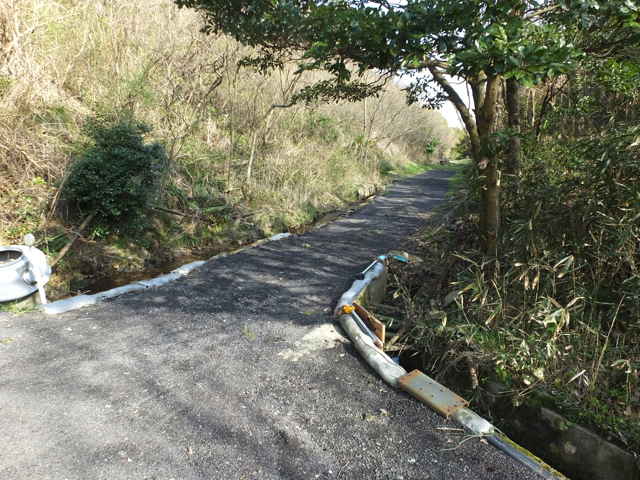 | 15:03 分岐を左へ谷を渡る。 | 15:03 湿地との間を進む。 | 15:04 美保関町森山 水路の脇を行く。 |