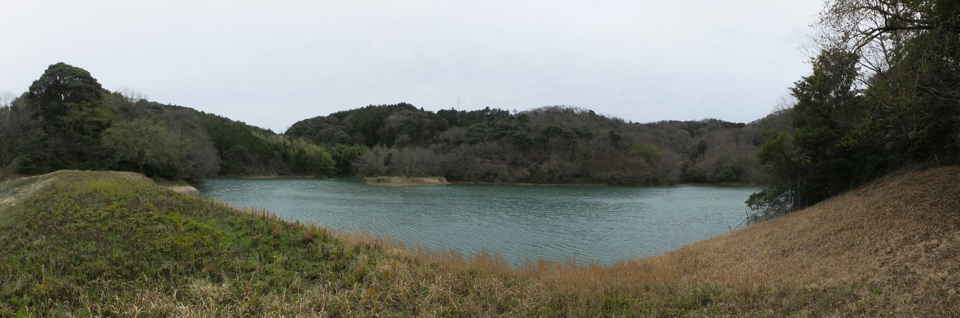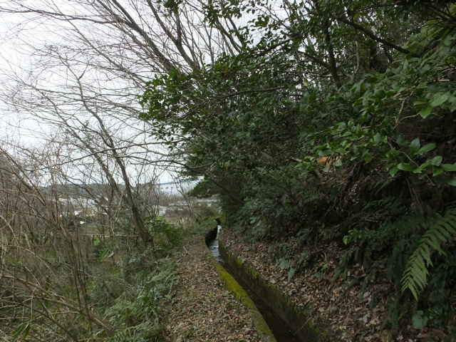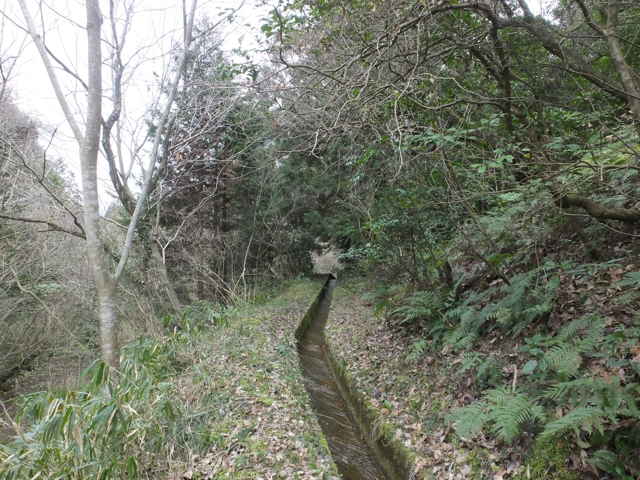 | 今日は、先日矢田町の溜池付近の山で、山腹に水路の隧道があり、八幡水路と書かれていたので、この水路の源流と末端を探すことにしました。 隧道から水路を遡ってみると、大きな溜池があり八幡溜池記念碑が建てられていました。八幡溜池(後山池)は竣工が昭和18年と刻まれており、76年前に作られたことになります。大正時代の地形図には、この位置に溜池がないので、この時に新しく溜池が作られ水路も作られたと思われます。 この記念碑の脇から径が延びているので上がってみると、溜池を周るように続いているようなので、行ってみることにしました。しばらく歩きやすい径が続いていますが、溜池の反対側、茶臼山の麓あたりで笹が多くなり、湿地になって進めなくなりました。このあたりが溜池の源流部で谷の奥になるようです。木々の間から斜面を上がると、すぐ溜池の周囲を周る作業道に出ました。作業道をしばらく歩くと道の両側が切通しとなり、山を越え溜池から離れるようになるので、手前の竹林から溜池の方へ入りました。竹林の中には踏み跡があり、はっきりした径が続いていて、歩き始めた堤塘に着きました。周囲は約1kmあるようです。 高い堤塘を下ると、下部の排水口から水が流れていました。ここからが八幡水路の始まりになります。水路は谷の山際を通って下っていき、矢田配水池へ上がる道路を渡り、奥堤池の脇を通って行きます。ここから水路は左へ曲がりますが、その手前に変わった水路の施設がありました。なんの為にこんな形に作られているのか不思議です。左へ曲がった水路は溜池の堤塘の脇から山へ向かい、山腹から隧道へ入っていきます。 隧道には「八幡水路 第壹号隧道」と書かれています。隧道の脇から山を越えるように径が続いています。ピークへ上がった所から、(右へ曲がり全く踏み跡がない藪を谷へ下ると、隧道の出口があります。)尾根を進むと、少し径は荒れたところもありますが、しばらくで舗装道路に出てきました。道路を南下し谷を西へ入ったところに、隧道の出口があります。隧道は長さ約100m位ありますが、直線で、勾配があまりないので、覗き込むと隧道の向こうに光が見えました。ここから水路は寺領池の脇を通って、舗装道路の脇へ続き、やがて暗渠となって道路を渡り、林内へ入っていました。林内を抜けると再び開渠となって、墓地の脇へ出てきて、墓参者が通れるように、コンクリート蓋がしてあります。墓地の先で、水路は地下を通っているようで、向かいの赤瓦の家の裏山に出口がありました。 山から進んだ水路は、松江道路で切られるので、側道、松江道路を水管で渡してありました。道路を渡った水路は、山と民家の間を通って、まっすぐ延びて武内神社の参道に出てきました。ここで暗渠になってしまいますが、近所の人の話では、「元竹矢小学校の敷地を通って、向こうの的場池に行っている。」とのことでした。的場池で水路の出口は確認できませんでしたが、約2km続いた八幡水路はここで終わりました。 |