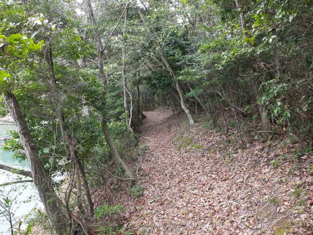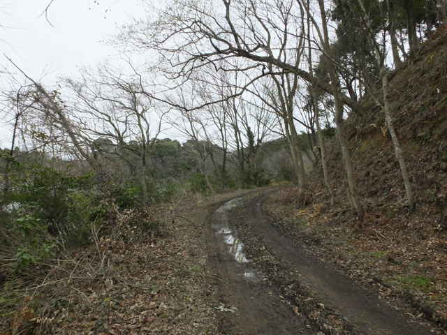| 矢田町 歩き始めた溜池の堤塘が見える。 | 切通しになる。 | |