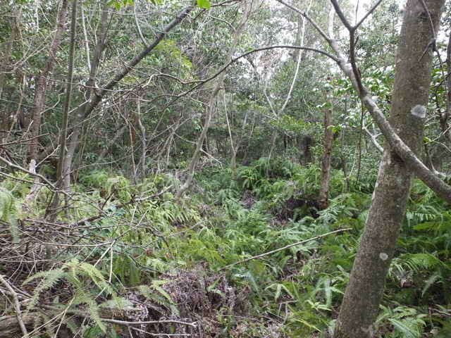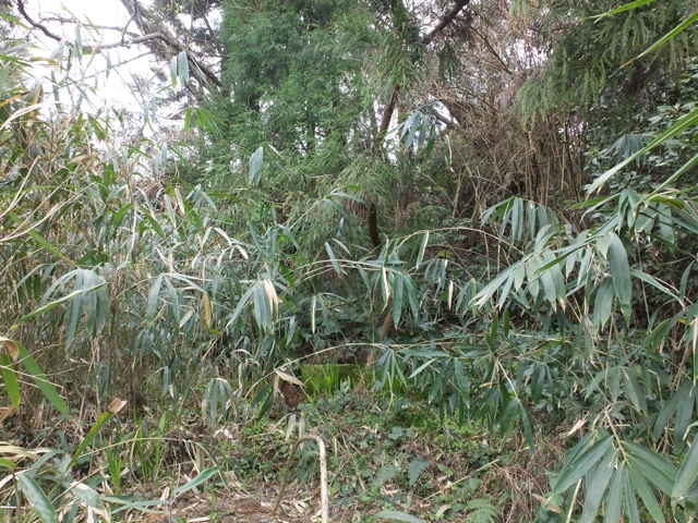 | 矢田町 竹林に入る。 | 径の先に笹が多くなる。 | ここが池の源流部か |