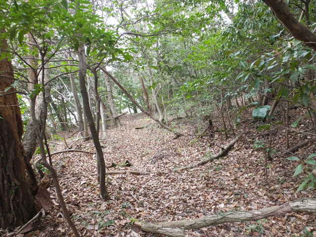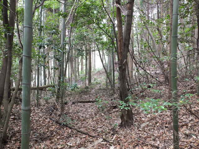 | 矢田町 手前の竹林に入る。 | 踏み跡がある。 | 広い径がある。 |