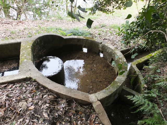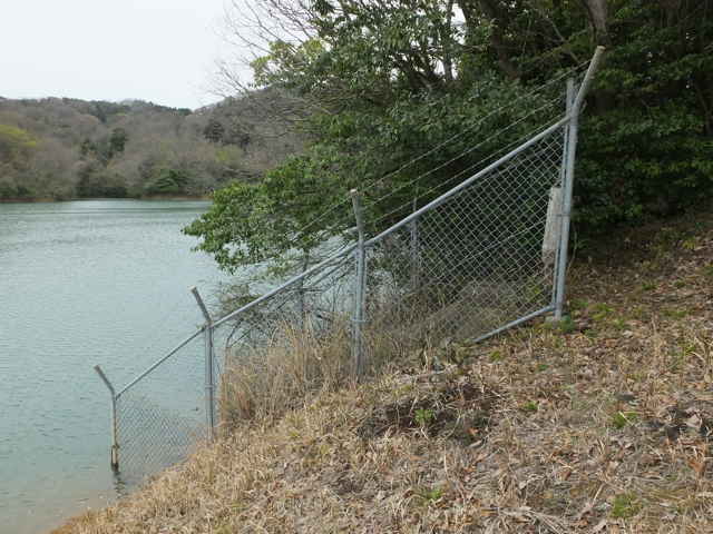 | 矢田町 変わった形の用水施設がある。 | 溜池の堤塘に沿って山へ向かっている。 | |
