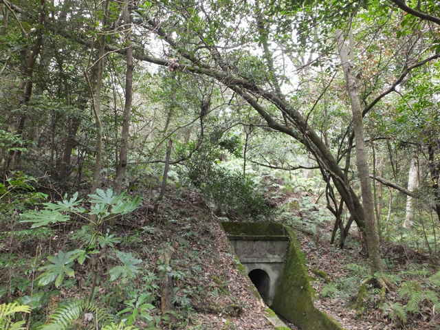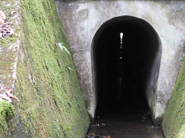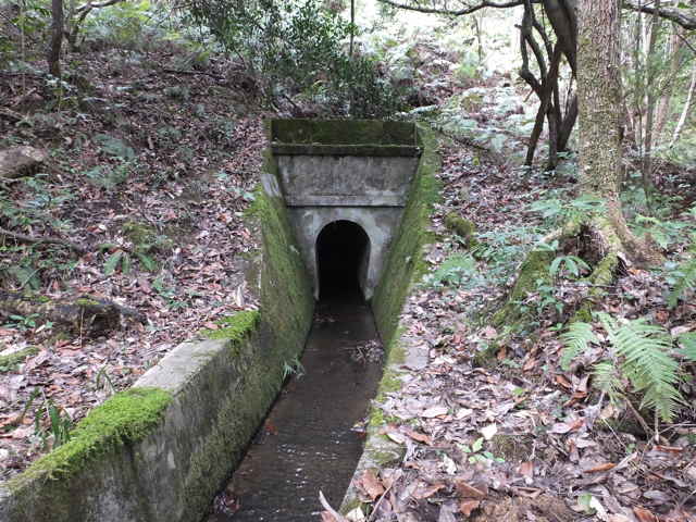 | 竹矢町 | 隧道の奥に光が見える。 | 林内をまっすぐ水路が伸びる。 |