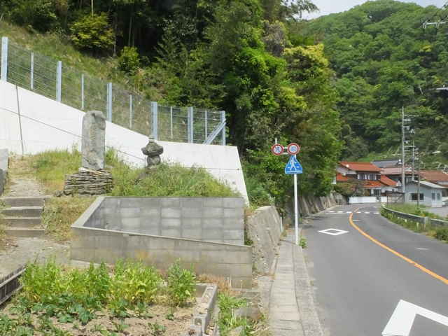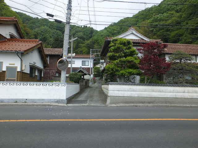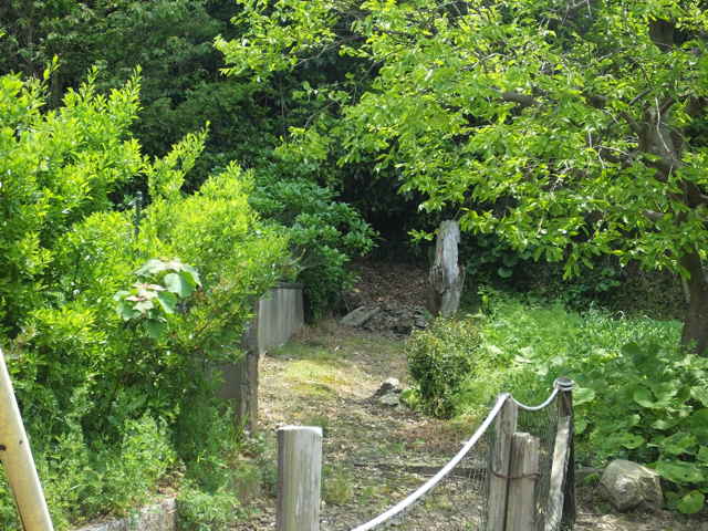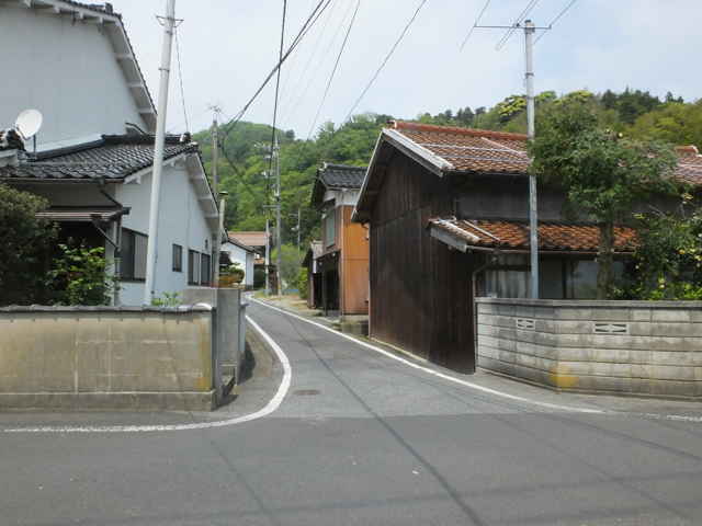 | 美保関町東長浜 集落の奥に墓地がある。 | 墓地の右奥から山へ上がる径がある。 | |