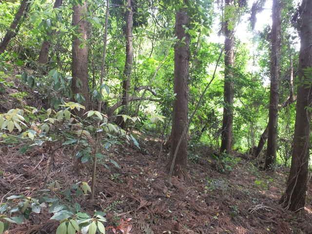 | 美保関町福浦 | 藪となってしまい、踏み跡も見えず断念。 | この斜面の上に径があったようだ。 |
