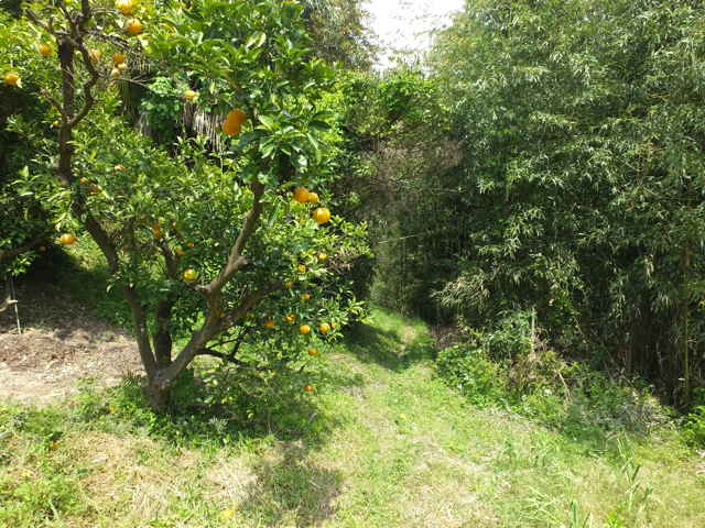 | 美保関町福浦男鹿 男鹿古墳の先から右の墓地へ向かって下る。 | 柑橘類の先から法面擁壁を西長浜へ下る。 | 美保関町西長浜 |
