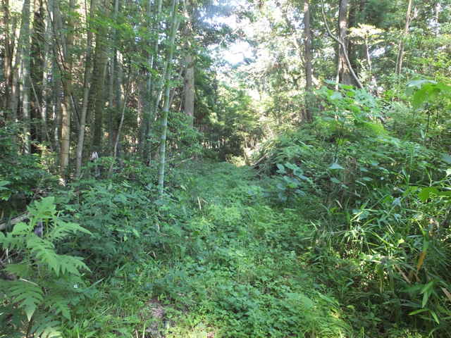 | 以前から地形図を見ると、八雲町の平原ニュータウンの南側の山の中に出入り口のない道が描かれており、気になっていました。グーグルマップを見ると、県道八重垣神社八雲線からつながっているようです。 平原ニュータウンの南側擁壁の脇から林内へ道がありますが、チェーンが張ってあり、立ち入りが禁止されているような雰囲気なので、一旦諦めました。県道から東へ折れて、東忌部町へ向かう市道を進むと、山へ入る広い道がありました。どこへ向かうのか入ってみると、しばらく上がると、広い林道は終わりますが、狭い道が続いていました。狭い道を少し進むと、また広い道に出会い、左へ上がると墓地があり、行止りになっていました。右へ進んでいくと植林地内に道があり、気になっていた山の中の道に続いていました。道を進んでみると、平原ニュータウンの脇の県道へ出てきたので、ここから引き返して、記録をとってみました。 |