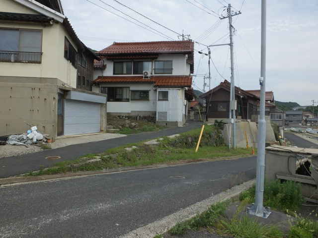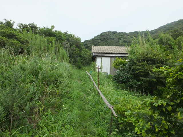 | 鹿島町手結 14:02 手結港から民家の間の小路へ入る。 | 14:10 灯台への径を諦め、小屋の脇を進む。 |