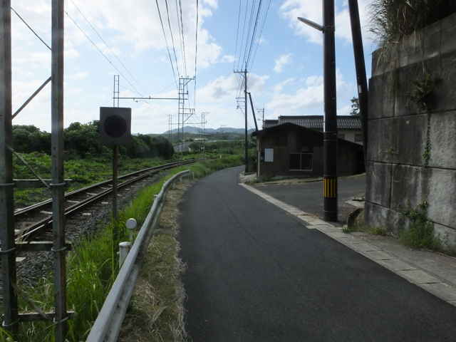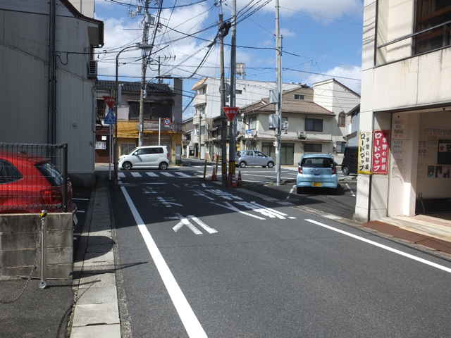 | 西浜佐陀町 この辺りへ出てきたと思われる。 | 電車の線路に沿って西へ進む。 | 左へカーブし線路を渡る。 |
