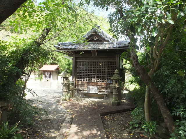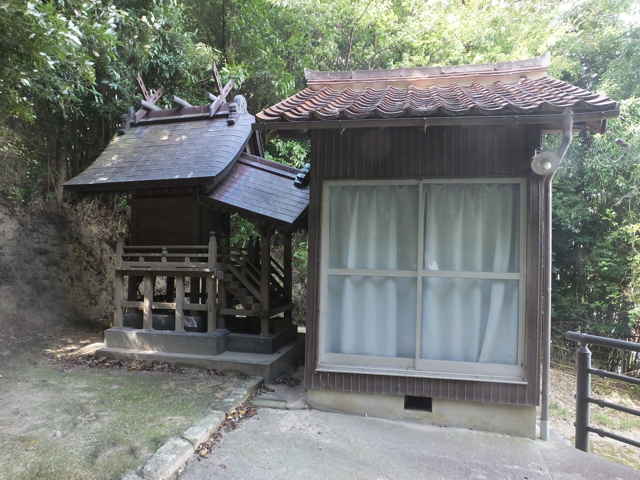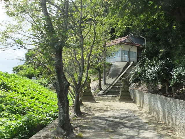 | 西浜佐陀町 山裾の道を進む。 | 道路脇の石段の上に神社がある。 | 日御碕神社 |