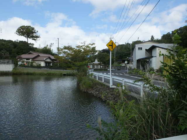 不動明王が祀られている。 | 国屋町 二つ池の縁を北進する。 | 右折すると比津町へ向かう。 |