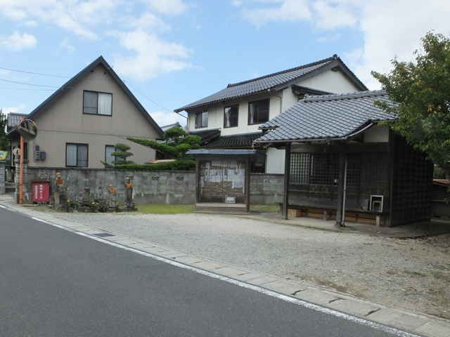 | 西浜佐陀町 往還は国道と並行して西進する。 | イングリッシュガーデンの前を進む。 | 大墓屋の隣地に供養塔と丁地蔵がある。 |