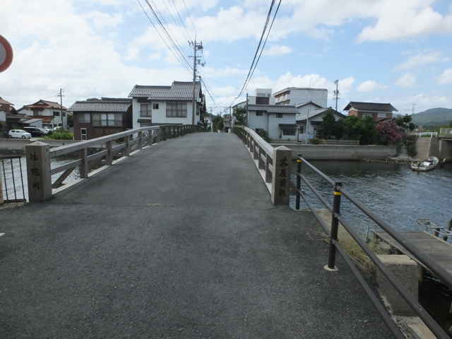 | 浜佐田町 歴史を刻んだお地蔵様が立っている。 | 集落を抜け、国道を渡って西進する。 | 西浜佐陀町 佐陀川の茶屋前橋を渡る。 |