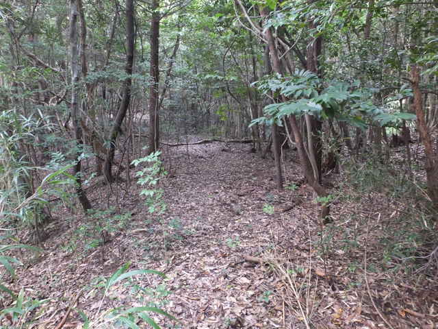 | 西浜佐陀町 丁地蔵から林内へ広い径がある。 | 林内の径 | 斜面に出たところで径が消えてしまう。 |