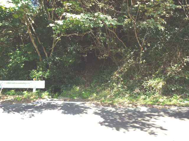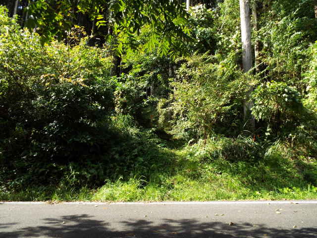 | 西生馬町 11:38 ガードレールの端から踏み跡がある。 | 入ってすぐ急斜面を上がる。 | 11:39 法面の上に径がある。 |