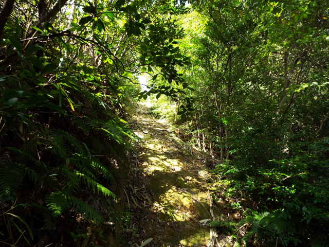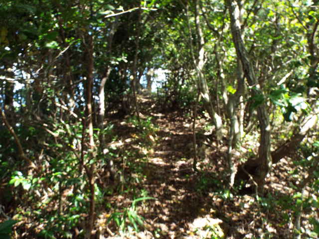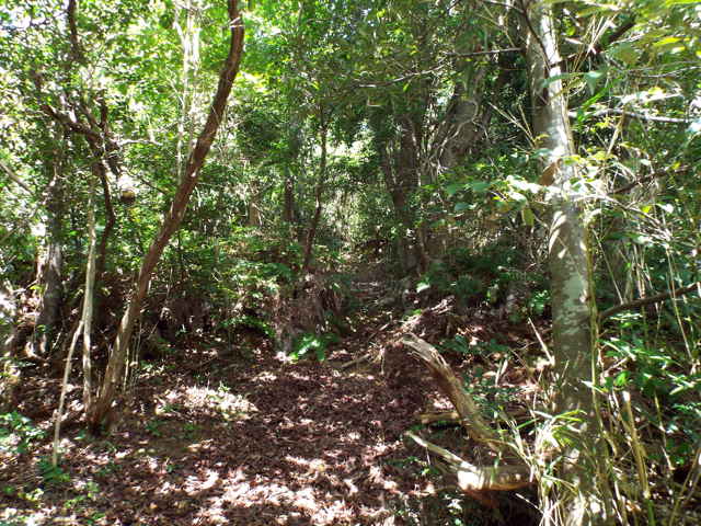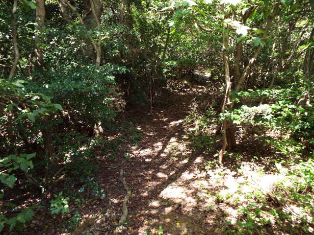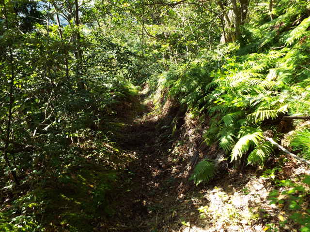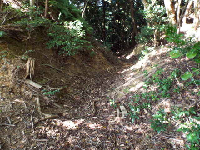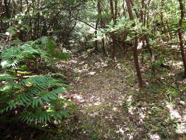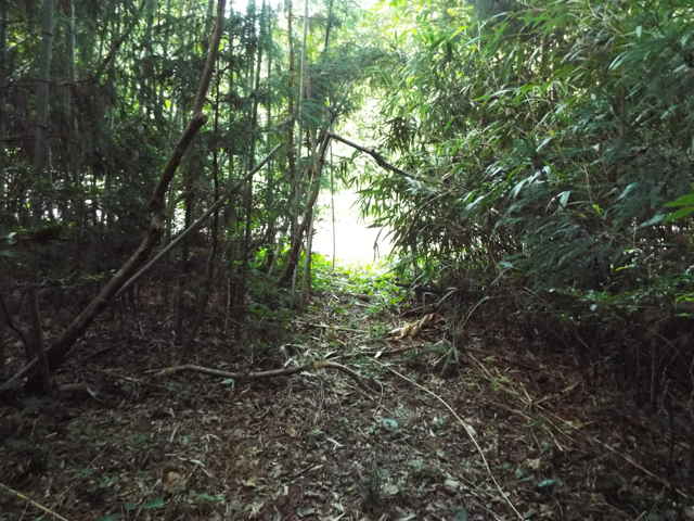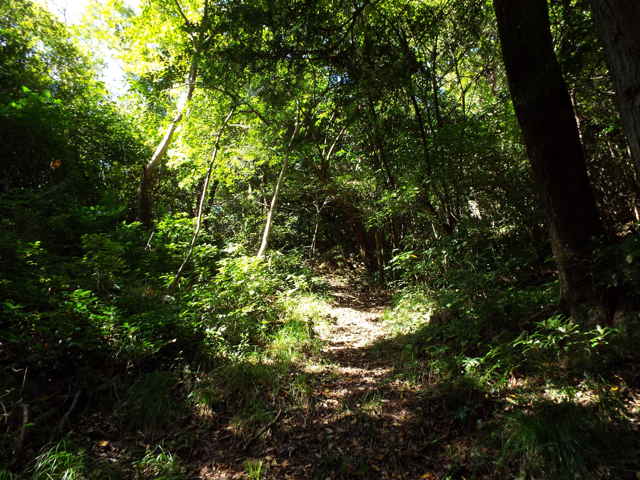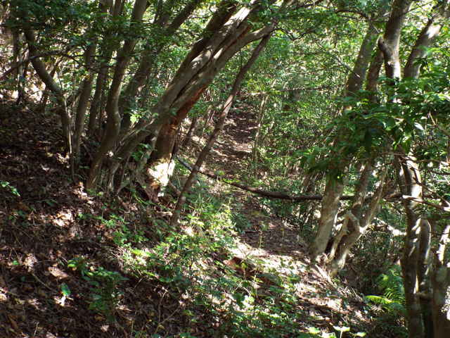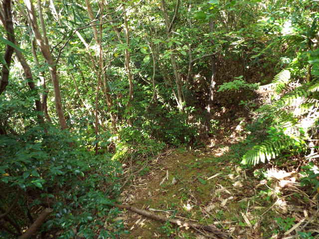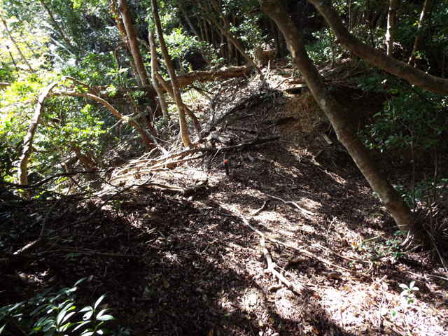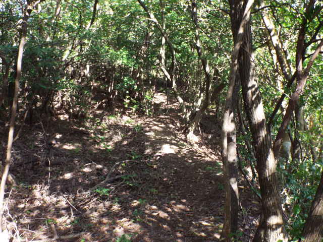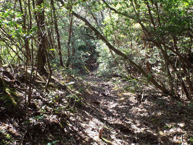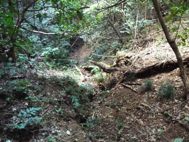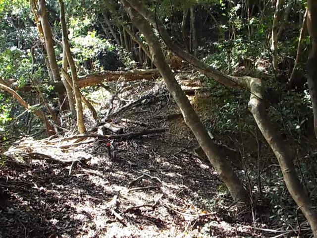 | 鹿島町 14:09 鞍部へ帰り、右の斜面を下る。 | 14:11 細いV字形の径を下がる。 |