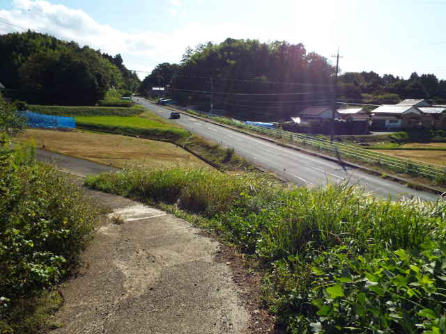| 鹿島町 14:34 開けた場所に出てきた。 | 県道御津東生馬線へ出てきた。 | 下りてきたところを振り返る。 |