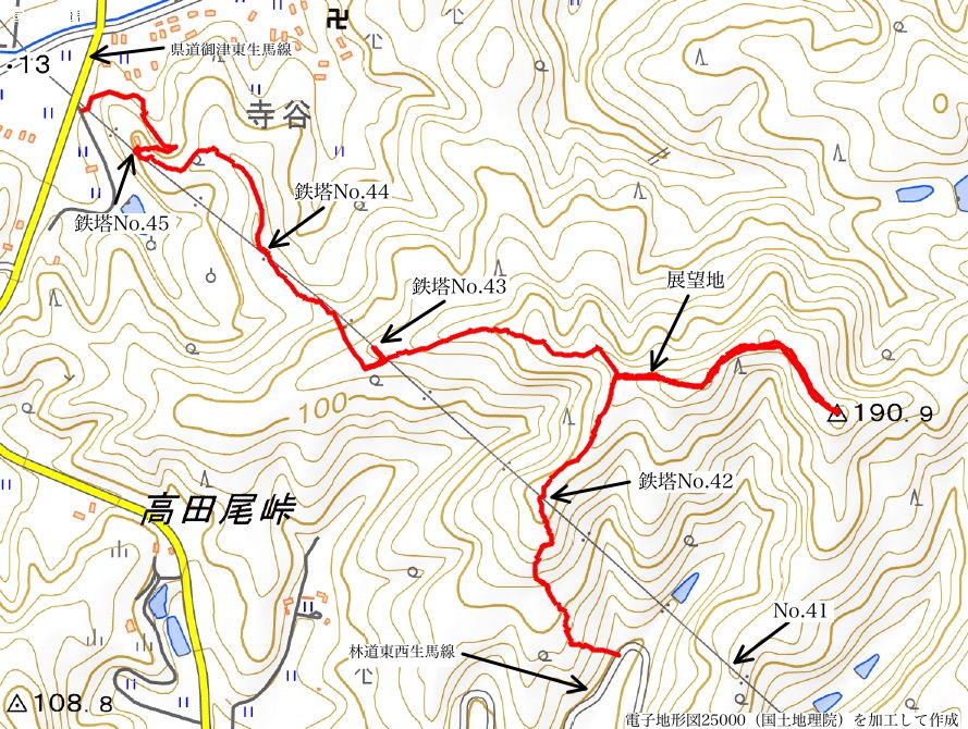 | 西生馬町 鉄塔からのパノラマ | 13:24 鉄塔の前から巡視路が続く。 | |