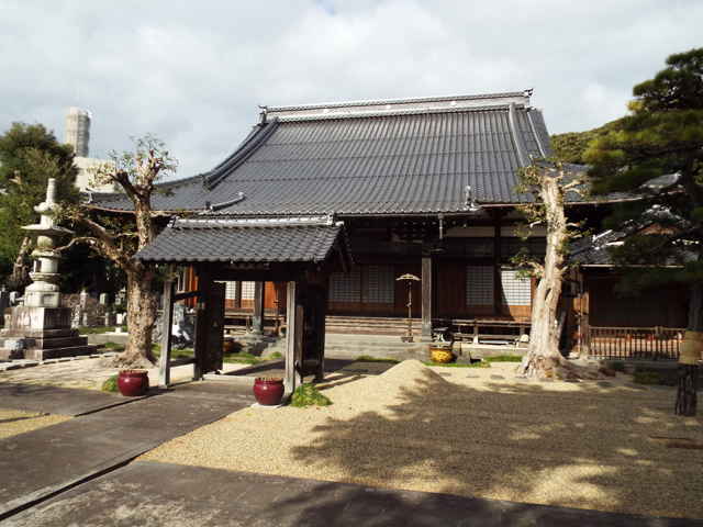 | 松江城から出発すると、現在の国道9号竪町交差点で東へ向かう伯耆街道と西へ向かう石州街道に分かれます。竪町から南へ雑賀本町を奥へ入ると洞光寺があります。洞光寺は松江城築城の際に広瀬から移ってきたとのことです。この洞光寺の南に山があり、ここで堀尾吉晴が新城地を探したという伝承から、床几山と呼ばれています。 洞光寺の北から旧街道は西に折れて、新町の通りを進んでいきます。新町と栄町の境の道路脇に大きな椨の木があり、その根本の洞に塞の神が祀られています。 塞の神から西へ進むと、三叉路になり、県道浜乃木湯町線(旧国道)に合流します。右の道は明治になってからできた道で、旧街道は左折し南へ向かいます。100mあまり進むと、右手に円成寺があり、堀尾忠晴の墓碑があります。 円成寺から100mばかり進むと、道路右手に長いブロック塀が続き、その向こうにJR山陰本線の線路が走っています。昭和37年に湖岸が埋め立てられるまでは宍道湖沿いの道で、昔はここに松並木があったそうで、400mほど行くと、左に善光寺があります。善光寺は出家した佐々木高綱(心瀧上人)を開基とし、境内にその墓碑があります。ただ、資料にある宝暦十二年(1762)に建てられたものはなく、新しく作り替えられた「心瀧上人之墓」でした。「山陰道(島根県)を歩く」に、小さいものですが佐々木高綱の古い墓碑の写真があります。また墓地には古い大きな五輪塔が数基ありますが、名前はわかりません。片隅には江戸後期から明治初期に活躍した乃木出身の力士「鉄ノ戸文四郎」の碑があり、元は道路脇にあったそうで、石碑の側面には「石州街道」と刻まれています。また門前には芭蕉句碑があり、「芭蕉翁 砂見塚」と記され、明和乙酉年(1765年)の銘があります。 |