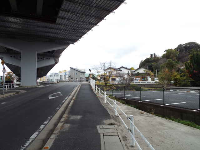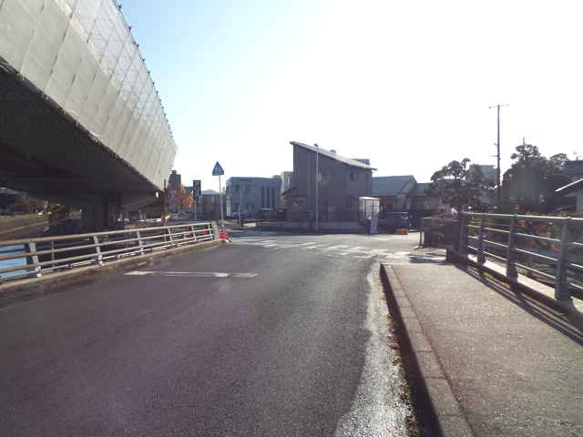 | 浜乃木二丁目 跨線橋から左折し、南東へ向かう。 |