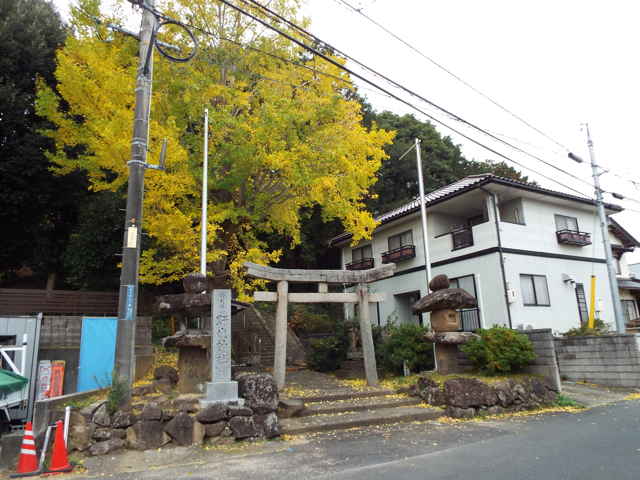 | 跨線橋の一丁地蔵から左折し、山居川の庄司橋を渡り、南東へ進むと、野代神社の前からけやき通りに出てきます。けやき通りを横断し、南へ路地を入って、乃木新町に入ります。新町は丘陵地にあり、すぐにY字路を右へ上がって行きます。少し上がった右手の上に十王堂があり、広い道に出会った右に歳徳神がありました。峠に上がった路傍に荒神・恵比須社・社日が一箇所に祀られています。社日碑は五角形の石柱に「天照大神」などの5柱の神名が刻まれています。 峠を下ったところで、先ほどのもう一つの旧街道のルートと合流しています。合流した旧街道は西へ進んで、農林高校の運動場を横切って忌部川を渡ったようです。 |