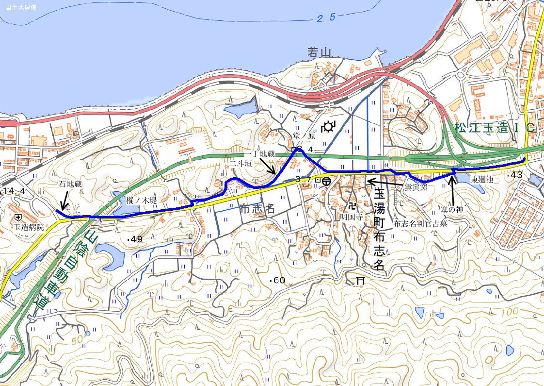 | 旧山陰道 玉湯町布志名(東廻池)〜玉湯町湯町(玉造病院) |