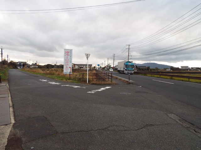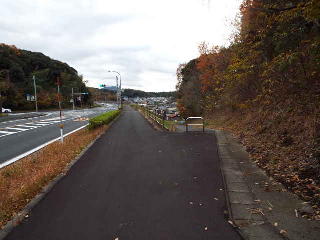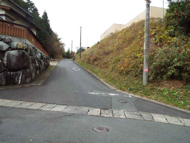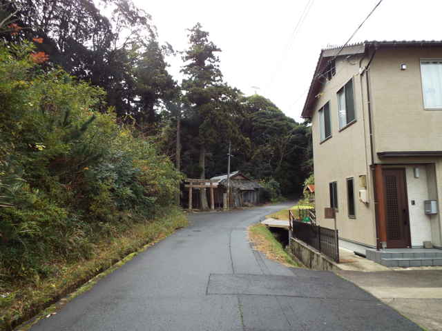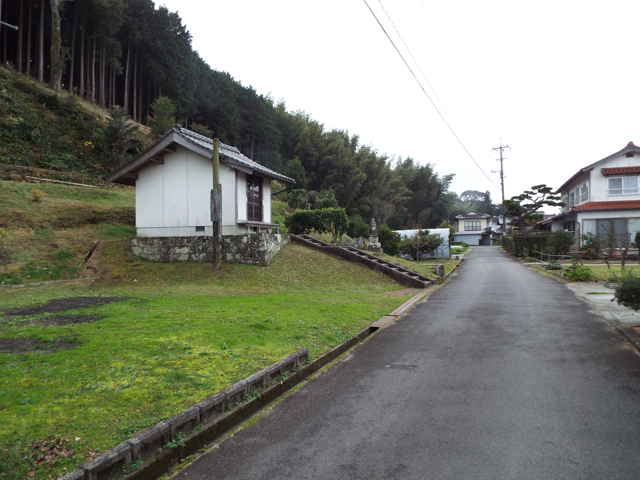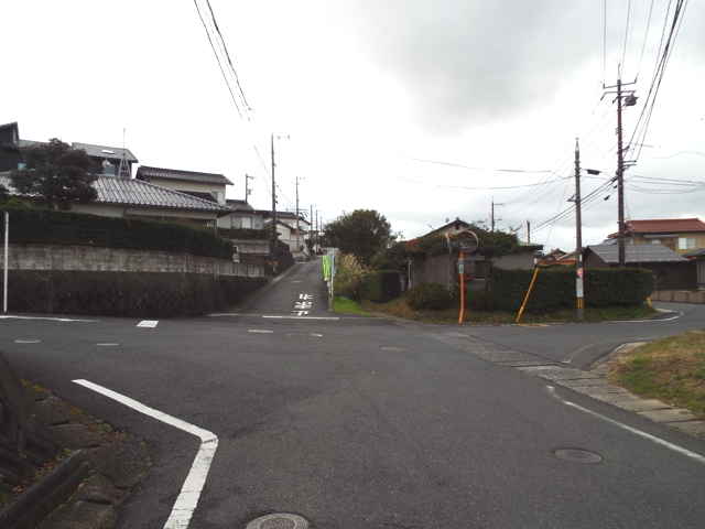 三界万霊塔から左へ曲がり、旧国道へ出る。 |