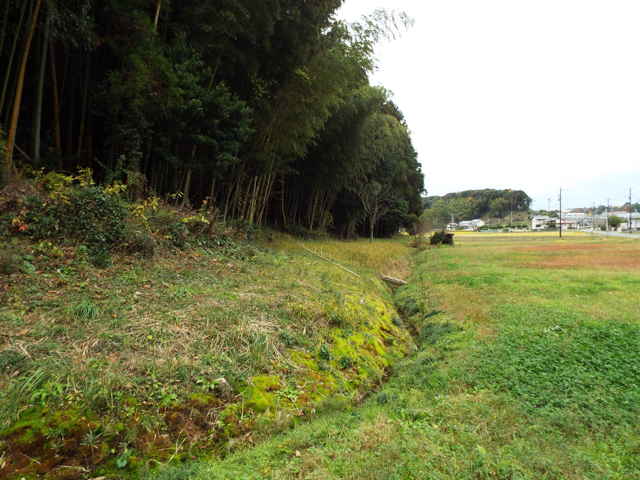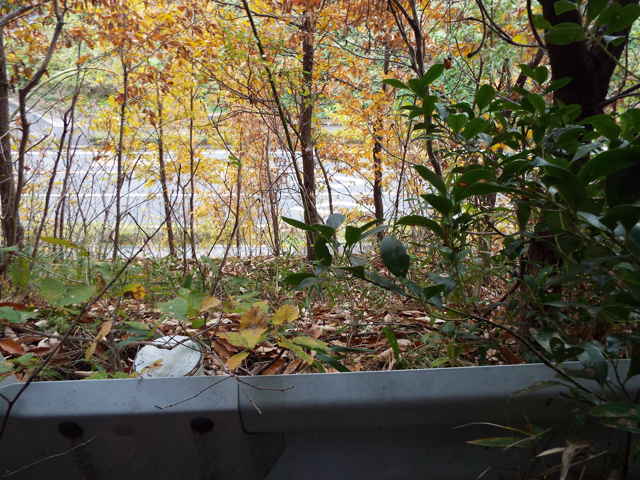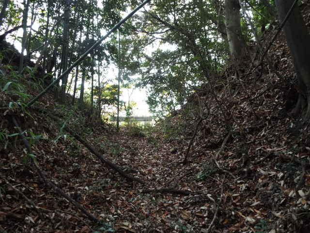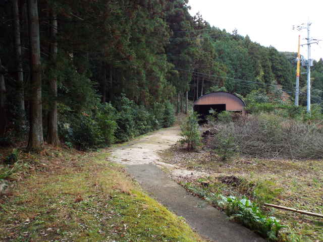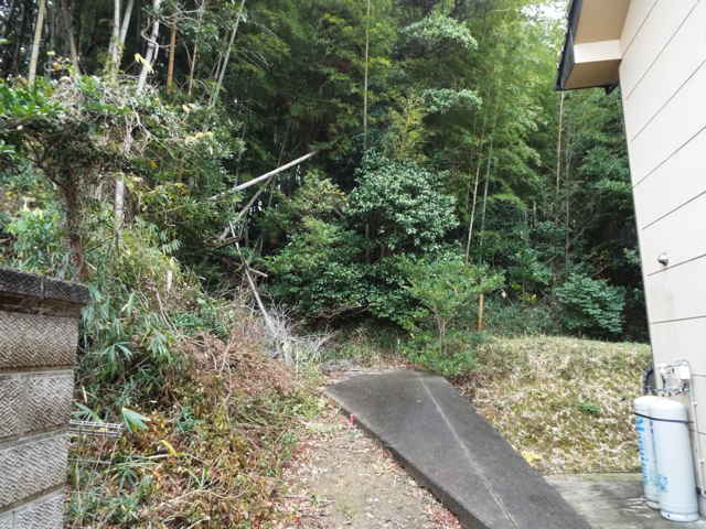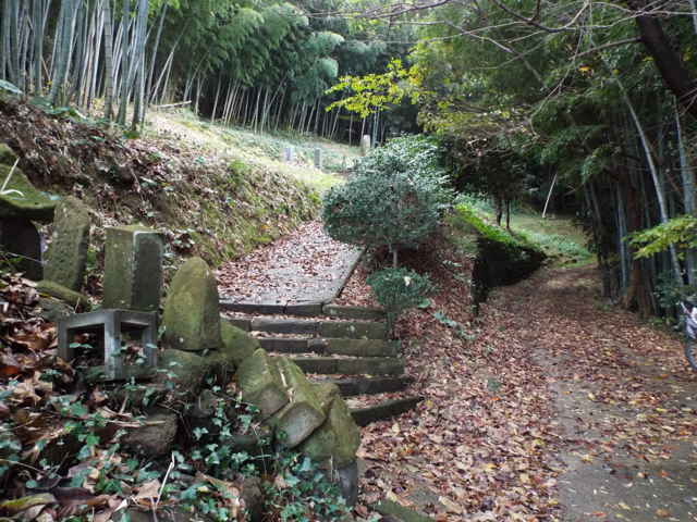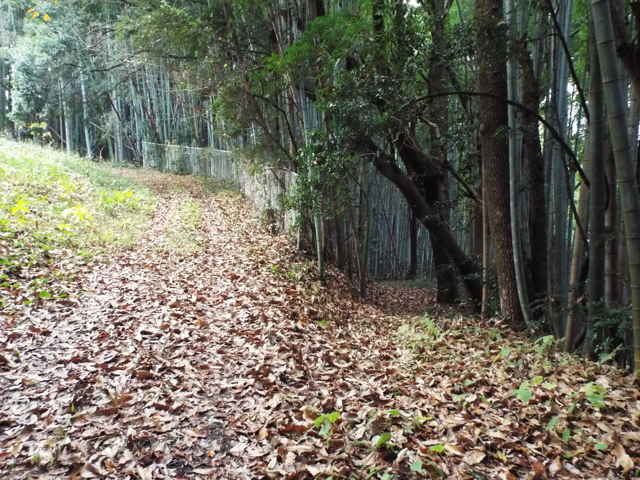 | 宍道町佐々布 竹林内の径の先にガードレールがある。 |
