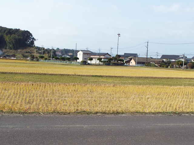 | 宍道町西来待小松 水田の畦道から市道へ上がる。 |