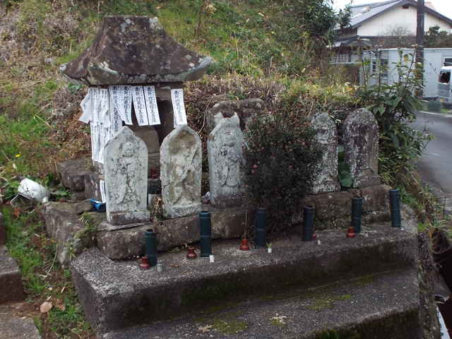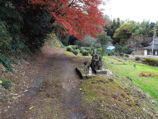 | 宍道町佐々布 径端に3基の五輪塔がある。 |
