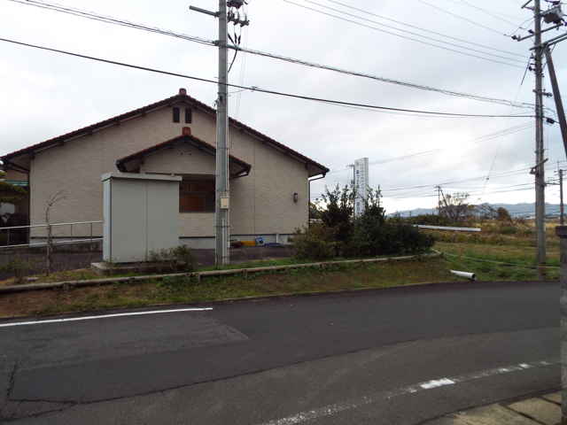 | 宍道町佐々布 施設の敷地を斜めに線路に向かう。 |