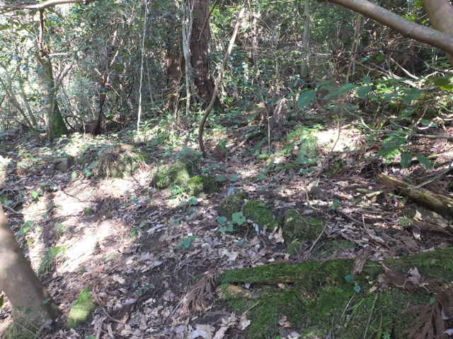| 東持田町 14:35 斜面の径に石垣状の石積みがある。 |
