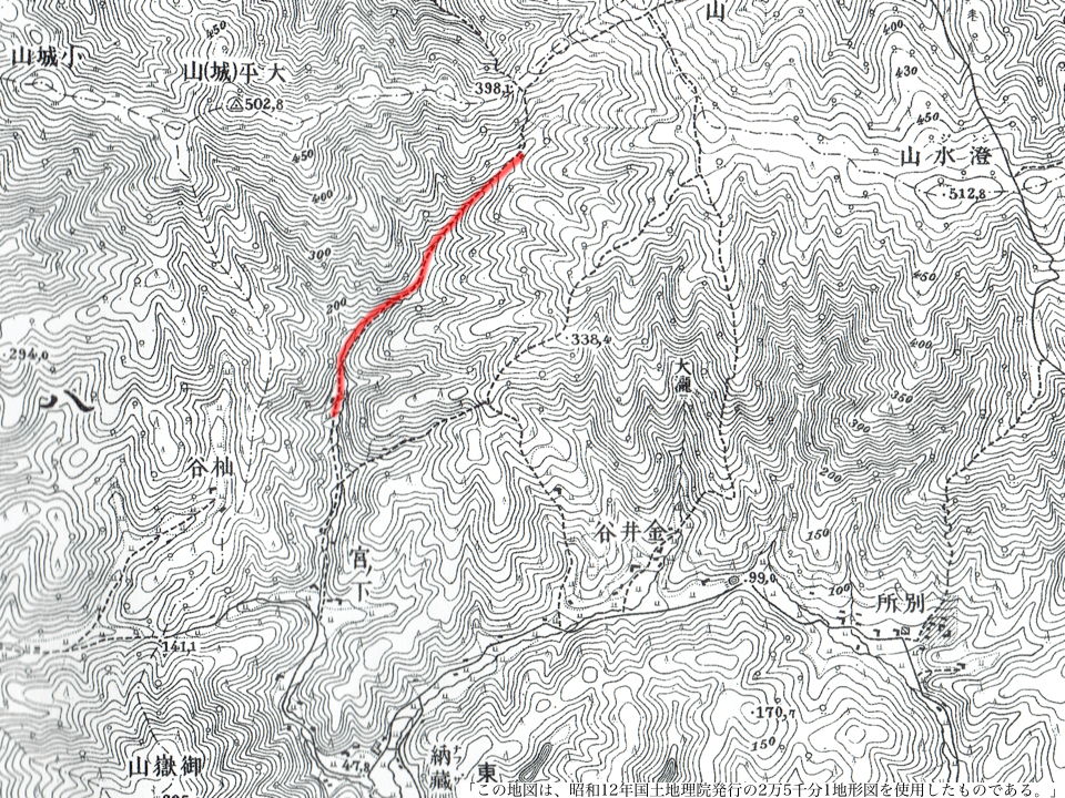 | 破線は2月2日に確認 昭和12年発行旧版地図 |