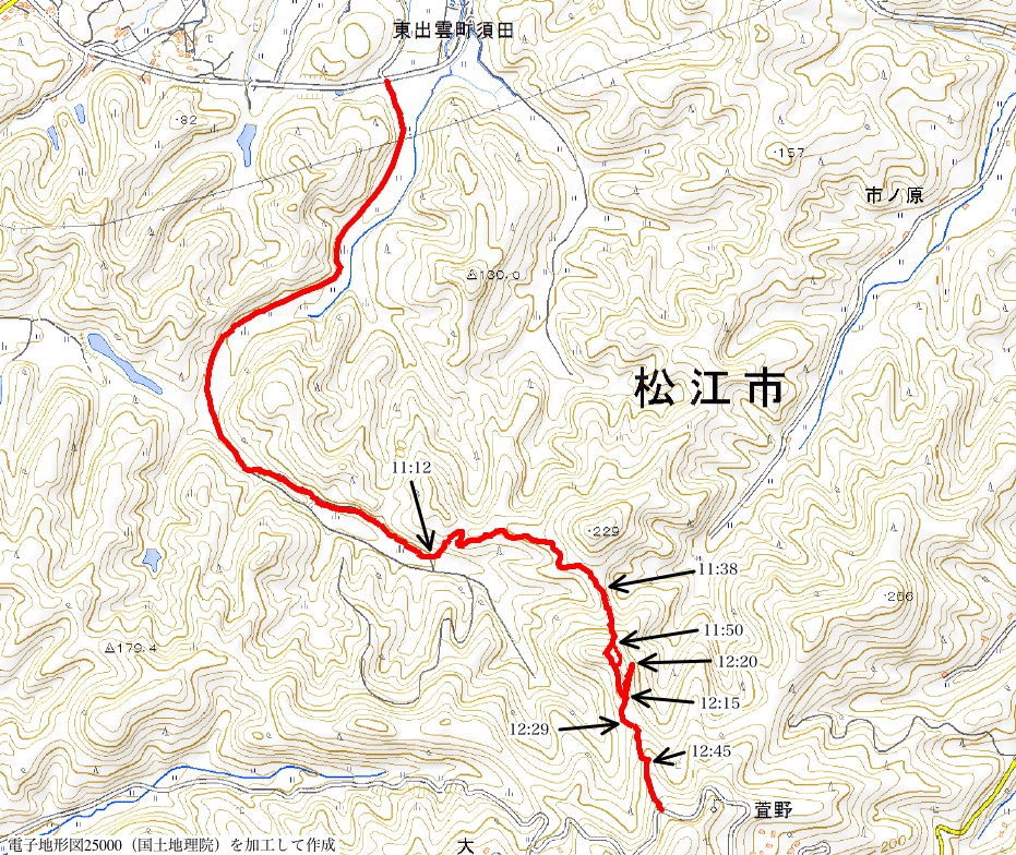 | 東出雲町 11:43 手前の右斜面へ上がる。 |