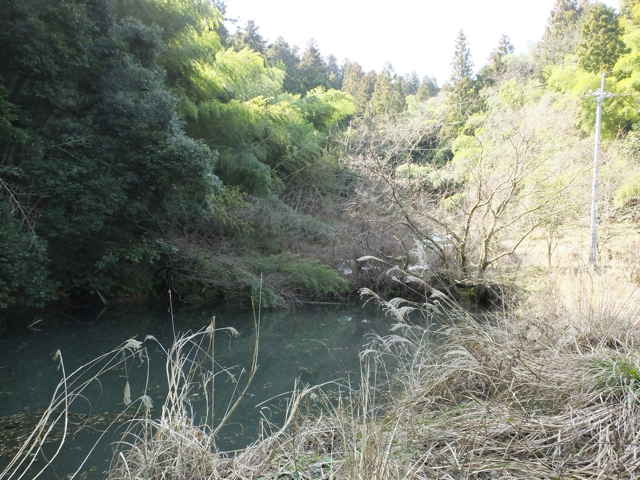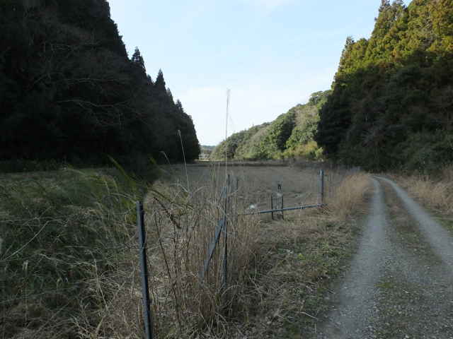 | 東出雲町 溜池の土手を右へ向かう。 |