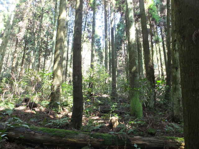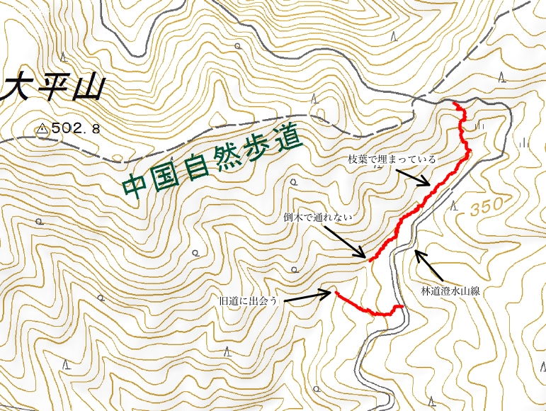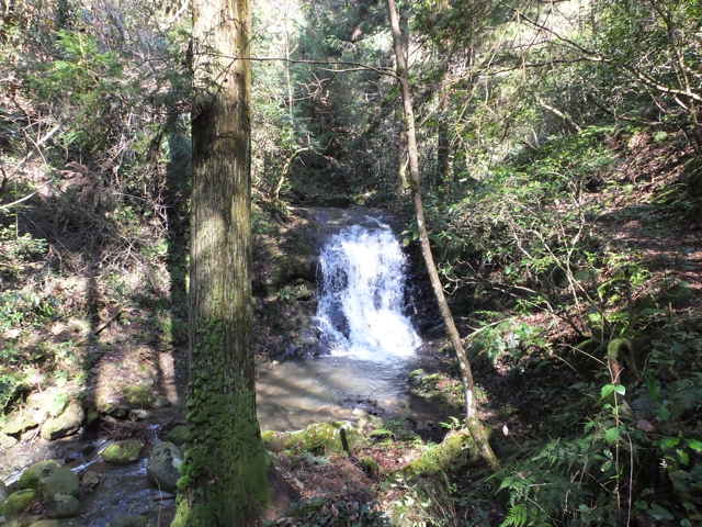| 2月2日、2月15日、2月20日に探した東持田町の納蔵西から持田川沿いに上がっていく持田川旧道(仮称)へ、4回目の挑戦となります。この旧道は昭和初期の旧版地形図に載っており、林道澄水山線ができるまでは、東持田町から島根町へ峠を越えるルートでした。今日こそ、目的の峠まで上がってみようと思います。 東持田町納蔵西から谷へ入り、大平滝を過ぎ川沿いに上がって行くと、開けた草地の斜面に出てきます。ここから川原へ下りるような感じになりますが、旧道は草地の斜面を横切り、木々の間から谷の斜面の径になります。斜面の径は崩れやすく、狭くなっています。今日は前回に使ったロープの余りを、短いですが危ういところに張っておきました。斜面の径は滝の上部を越えて行きますが、滝を越える部分には石垣が組まれていて、昔の旧道であったことが偲ばれます。 滝を過ぎたところで川を渡っていくと、倒木が径に横たわり、その先に大きな滝が見えてきます。この滝の手前には、滝の上部を越えていく斜面の径があったように思われますが、斜面の径が崩壊しているようです。崩れた斜面には、掴めるような木がなく滑り落ちそうですが、先日簡略的にロープを張ったおかげで、幾分か安心して通れるようになりました。斜面を横切り、滝の直前の急な崖をロープを頼りに上がると、斜面の上に滝を越えていく径が残っています。 滝の上部を越えると、径は倒木のある川沿いに続き、その先にはまた大きな滝があります。滝の両岸は急斜面で径はなく、滝の手前から斜面に斜め後ろに向かって径が上がっており、その上に川上へ向かって径が続いています。滝の上部を越えて行くと、斜面の藪の下には水の流れ落ちる音がしており、滝が連なっているようです。 この先の斜面の径は当初、木々の枝が伸び放題の藪になっており、通れる状態ではありませんでしたが、ほとんど枝を切ったので、歩きやすくなりました。径を進むと、大きな長椅子のような岩が横たわっており、昔の人はここで休んだのかなと、想像してみたりします。ここから少し進むと平坦になり、川に出会います。 川のある場所は少し開けた場所になっていて、川を渡っても径があるのかなと思いながらも、今までは川を渡らず直進して、少し先から川を渡っていました。今日は川を渡ってから、川沿いを下って確かめると、山際にはっきりとした踏み跡が残っており、先程川に出会ったところまで続いていました。どちらがルートなのかは微妙なところです。 10分ほど径を上がると大きな岩場となって川沿いの径はなくなり、手前の左の斜面に「く」の字形に上る径が続いていました。斜面の細い径を上がると、岩場を越えて、やがて植林地となり、谷はやや平坦になってきます。この先で小さくなった川を渡ると、径が全く見えなくなってしまいます。 川沿いに上がって行くと、右の斜面が急になってくるので、対岸へ渡ろうとしますが、川は細いものの、えぐられたように深さがあるので、簡単には渡れません。なんとか対岸へ渡って、径のない谷を上がって行くと、川が左右に分岐します。 旧版地形図から想定したルートは左なので、左の谷へ向かいましたが、この谷は狭く、両岸の斜面は急となって、非常に歩きづらくなってきます。引き返そうとも思いましたが、もう少しと思い進んでみました。谷の最奥では、目の前に高さはないものの急斜面があり、大きな岩の横からよじ登りました。崖の上は緩斜面になっており、以前に径を探して入ったことのある見覚えのある谷でした。もう少し上がると、林道の峠の少し下へ出てくるはずです。 旧道がこんな狭く急な谷を上がるはずはなく、別のルートがあるのではないかと、近くを探して見ると、U字形の踏み跡らしきものが下がっているのが見つかりました。その径を下がってみると、先程の川が分岐したところへ下りてきました。左の川を上ったのが間違いで、川に挟まれた林内の尾根筋へ上がるのが正解だったようです。はっきりした踏み跡をたどると、15分ほどで林道へ出会いました。 なんとか4度目の挑戦で、旧道を峠まで上がることができました。まだこのルート上で確認したいところがいくつかあるので、またの機会に歩いてみようと思いますが、とりあえず持田川旧道の探索はこれで終わりとします。 (2020年9月10日に再訪すると、11:56以後の谷沿いの径は、植林地の伐採に伴う倒木が谷の斜面を塞ぎ、またその上部は伐採に伴う枝葉が谷を埋め、径は見えなくなり、非常に歩きにくい状態になってしまいました。峠までは上がれないので、途中の11:52付近から斜面を林道へ上がるルートを確保しました。また10:52の草地は、イタドリや蔓植物が生い茂り、夏場はナタ等がないと通れません。川沿いが通れればいいのですが。) |