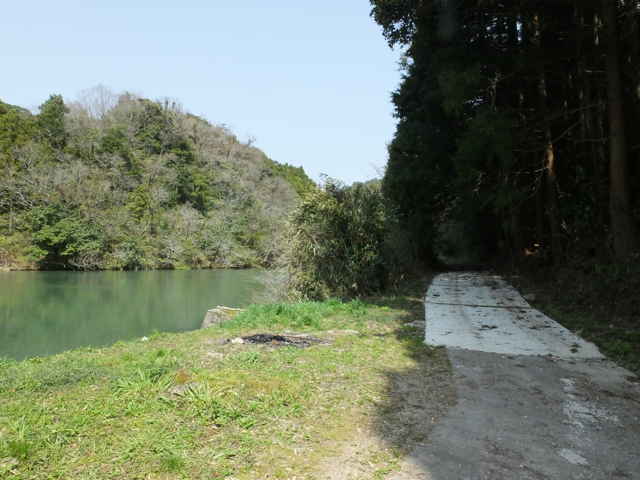 | 12:19 2つ目の溜池の横を行く。 | 12:22 溜池で舗装道路は終わる。 | 12:25 植林地内の作業道を進む。 |