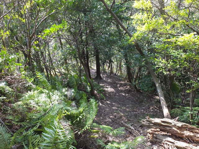 | 12:51 分岐を左へ、間違えて直進し引き返す。 | 12:57 分岐を左へ、谷を渡る。 | 12:58 はっきりした踏み跡が続いている。 |