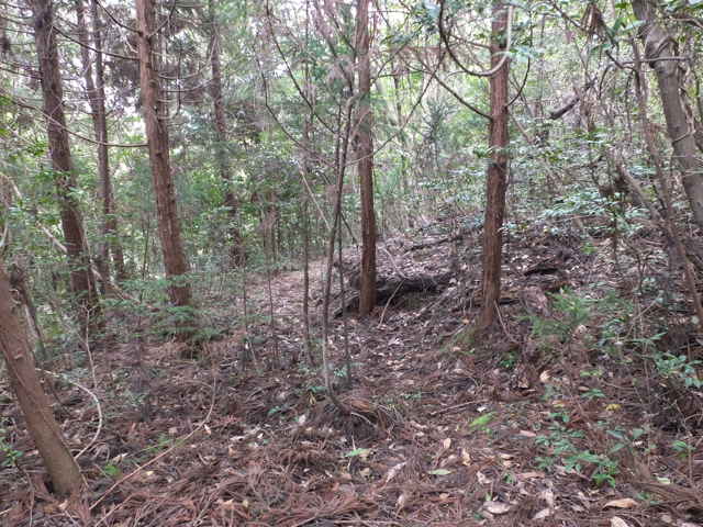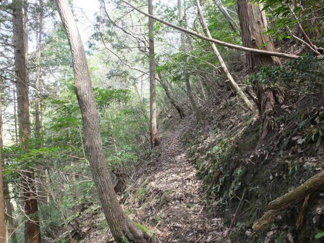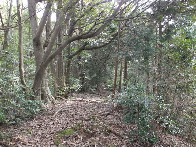 | 東忌部町 11:38 斜面をトラバースして径が伸びる。 | 11:40 右の斜面へ分岐する。 | 11:40 径はつづら折れに上がっていく。 |