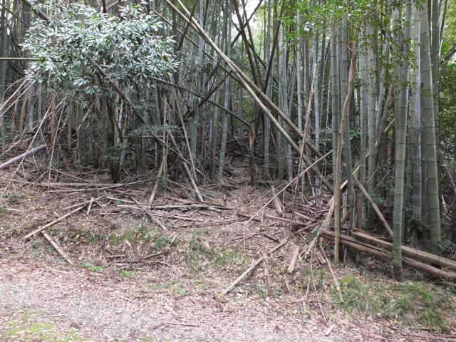 | 乃白町 15:01 14:13の分岐へ帰り、左折する。 | 15:04 竹林内に踏み跡がある。 | 15:08 踏み跡が見えないが尾根に向かう。 |