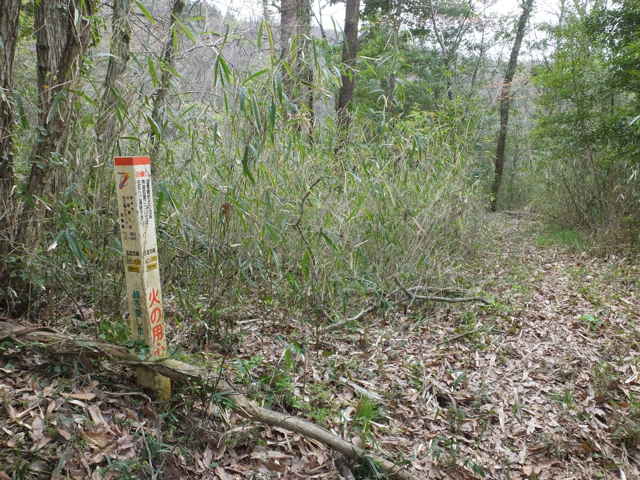 | 八雲町 でてきた竹林を振り返る。 | 12:44 作業道を右へ行き、左折する。 | 12:45 巡視路案内標識を左折する。 |