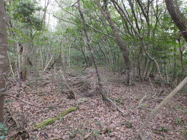 | 西忌部町 次のピークへ向かう。 | 15:47 次のピークは藪になっている。 | |