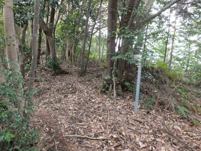 | 星上峠から西の方を見ると、尾根を下がったところのピークにマイクロ波の反射板が見えます。以前から案内標識があって気になっていたので、行ってみることにしました。 星上峠から八雲側へ500mほど下がったカーブから尾根に向かいます。カーブミラーから林内へ入ると、少し平坦な場所で、幣串のようなものがあったり、構造物に使われていたような石材が片付けられて積まれていたりして、ここはなにか祭祀が行われていた場所のようです。 反射板へは、今回は平場から尾根に上がって進みましたが、帰りに確認すると案内標識のあるルートは、尾根に上がらず、左下を行く径が正解のようです。 15分ほど尾根を下がって上がると、反射板に到着します。反射板のあるピークから、今は松江市街が見渡せますが、周りの木が大きくなると、北側の展望はなくなると思われます。 |