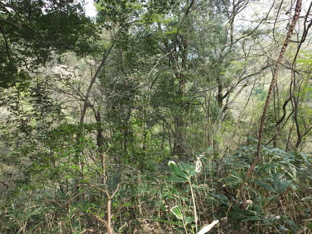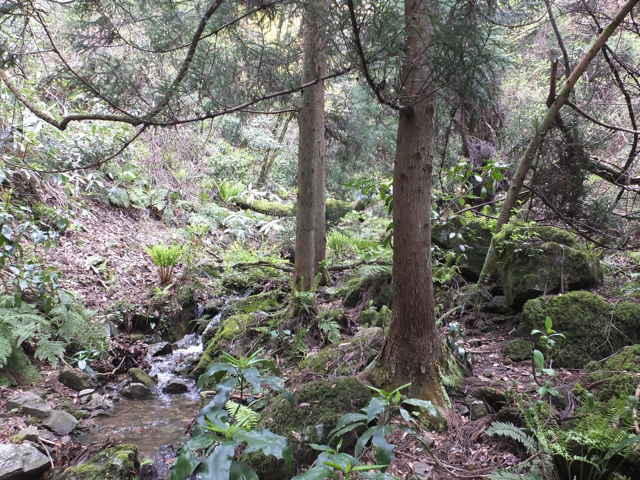| 八雲町秋吉 13:11 このあたりから谷を上がったかもしれない。 | 13:23 合流点に帰り、谷を下がる。 | 13:27 植林地内を下がる。 |