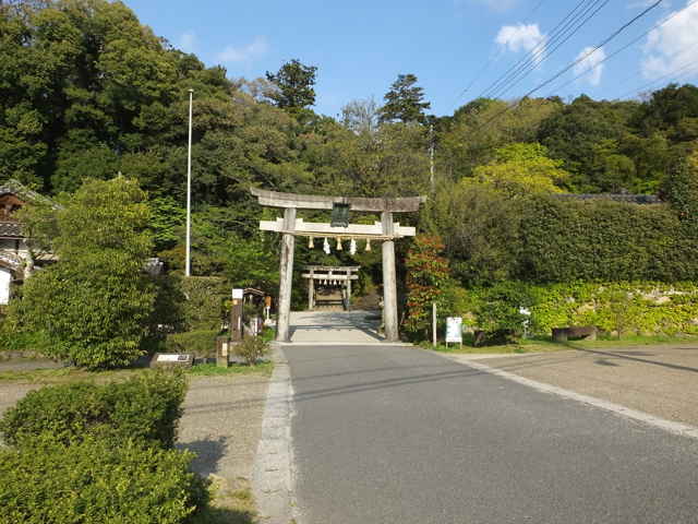 | 玉湯町玉造 9:32 玉作湯神社一の鳥居。 | 9:32 二の鳥居の右から道を上がる。 | 9:34 谷を上がって行く。 |