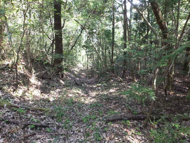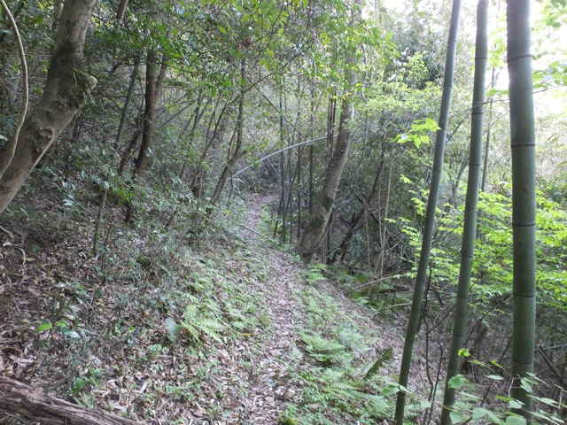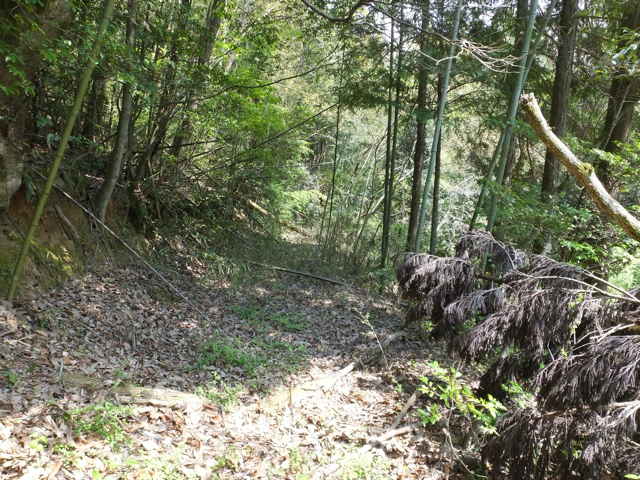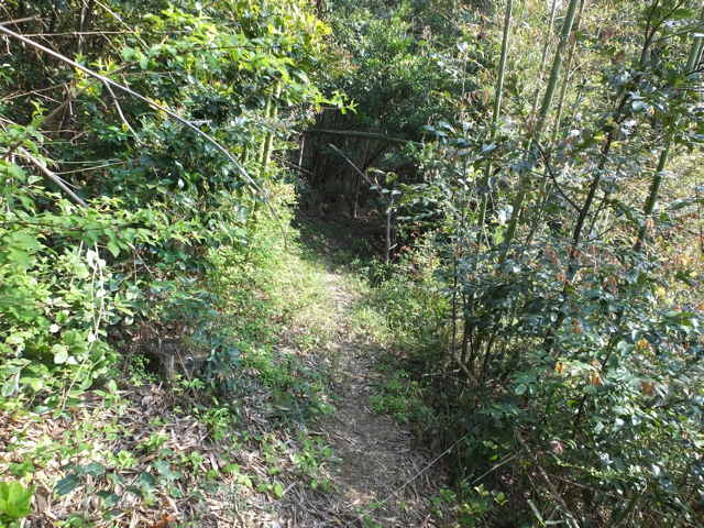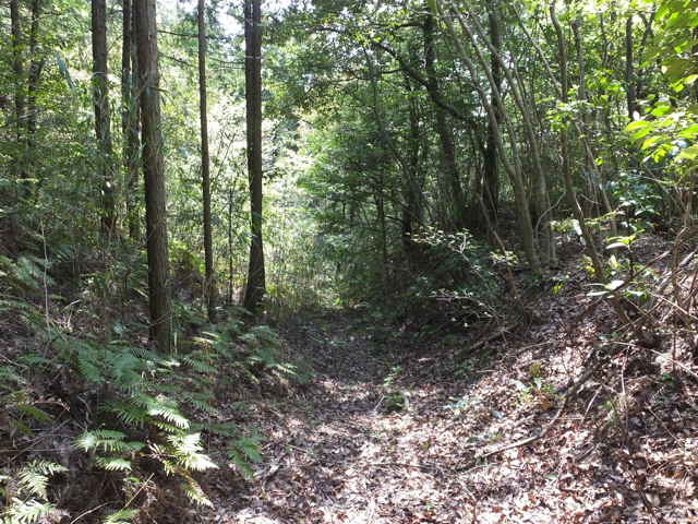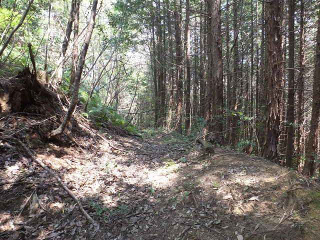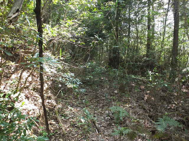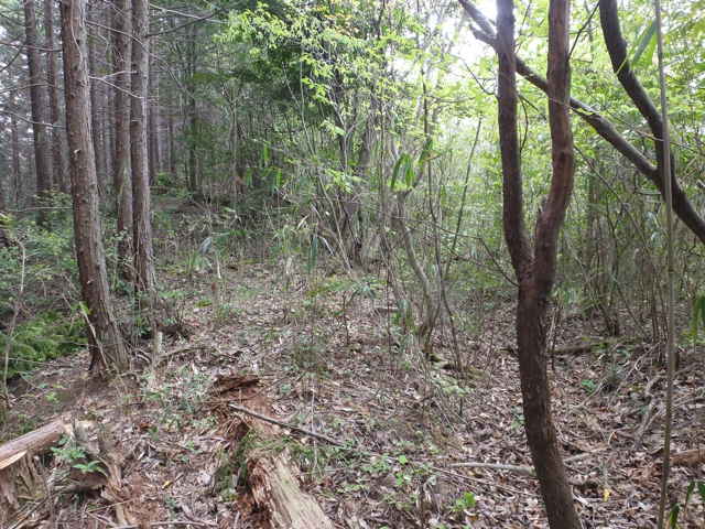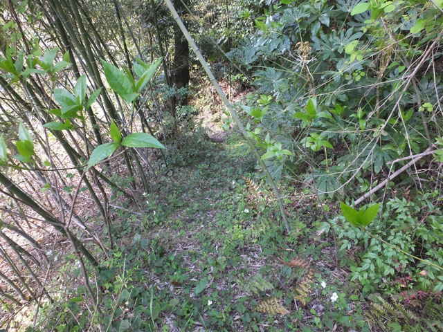| 西忌部町一崎 14:16 民家への入り口を上がる。 | 14:17 民家の手前から山へ入る。 | 14:19 林内に広い径がある。 |