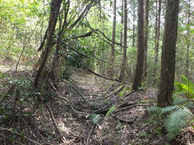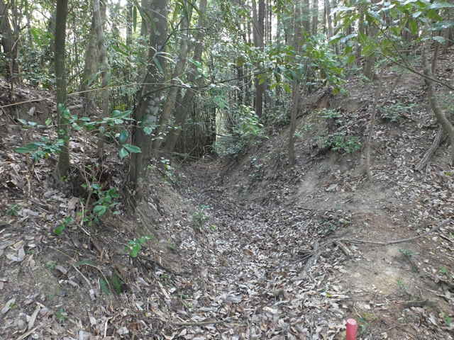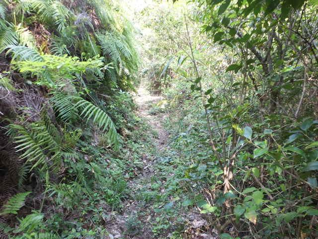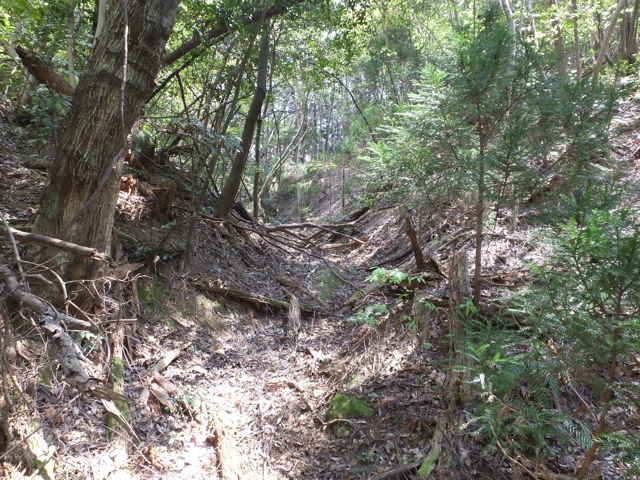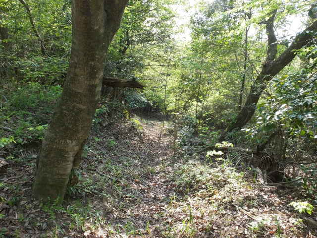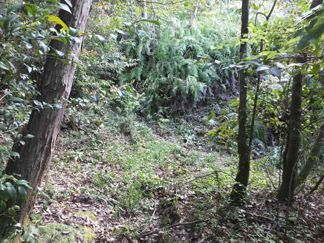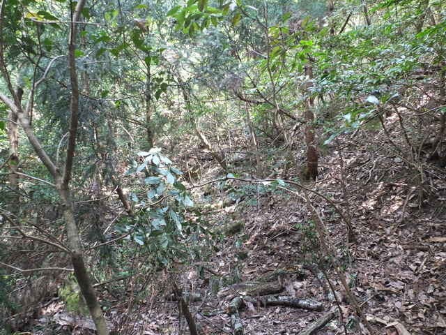 | 西忌部町 12:33 谷の奥から斜面へ上がる。 | 12:38 斜面に踏み跡がある。 | 12:39 U字形になった径が上がっている。 |